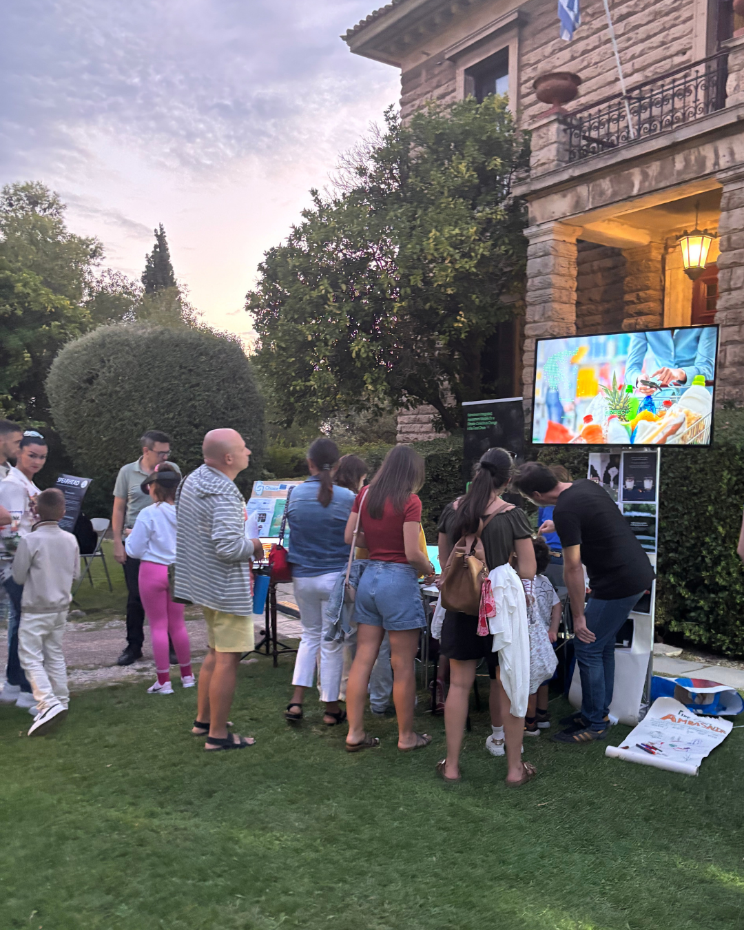 The CHOICE introductory video, complete with Greek subtitles, played on a large screen throughout the evening, welcoming the public to the broader mission of the project.