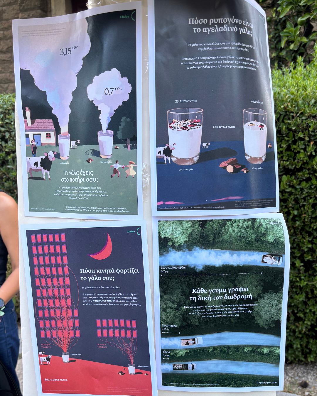 The booth also featured a gallery of data stories developed by LIBRA AI Technologies, focusing on the Greek pilot. Through visually engaging posters, visitors compared the environmental impact of cow’s milk versus almond milk, and beef versus chicken or soy-based alternatives. These comparisons were based on evidence from CHOICE’s IAM models and communicated in simple, relatable terms.